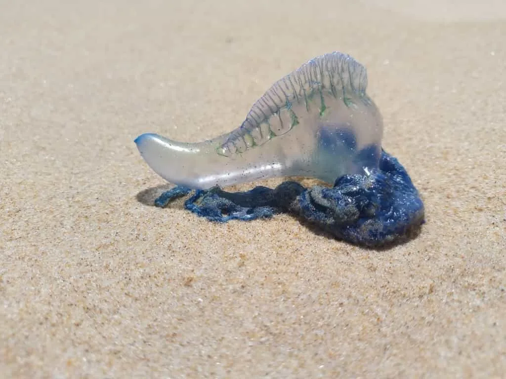 La fragata portuguesa, un organismo marino reconocible por su flotador gelatinoso y sus largos tentáculos urticantes, es considerada altamente tóxica y peligrosa, incluso cuando está muerta, por la presencia de células urticantes que pueden liberar veneno al menor contacto con la piel.